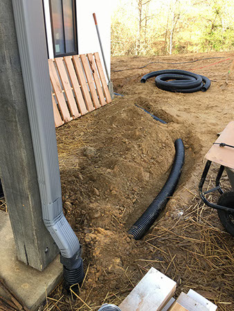 Gutter drains leading to a catch basin thats exits into a storm drain